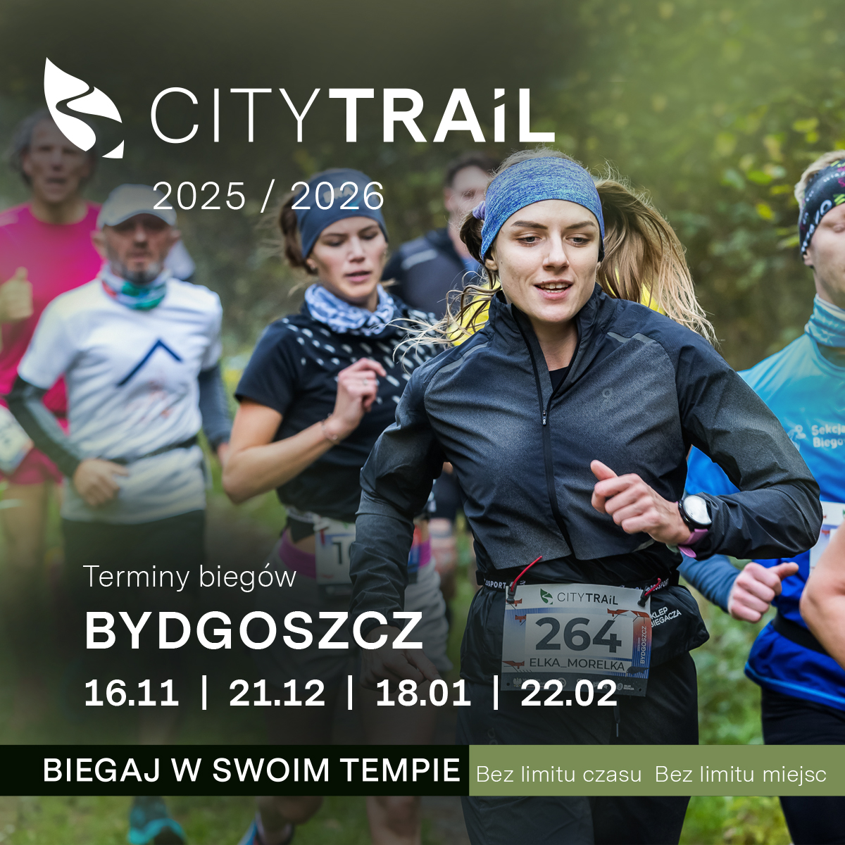 CITY TRAIL to 5-kilometrowe biegi przełajowe, rozgrywane jesienią i zimą w siedmiu miastach w Polsce. W sezonie 2025/2026 na mapie nie mogło zabraknąć Bydgoszczy. Trasy są urokliwe, prowadzą głównie po leśnych alejkach, a co najważniejsze – nie ma limitu czasu. Można biec, truchtać, podziwiać drzewa, a nawet przyjść po raz pierwszy tylko po to, by poczuć atmosferę.
